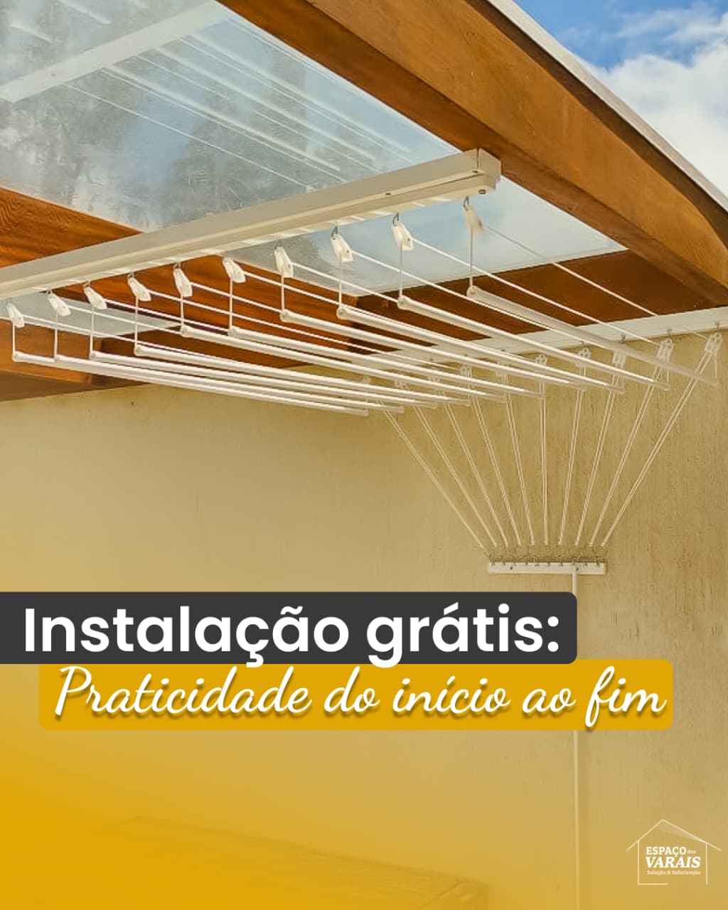 Pensados para facilitar seu dia a dia, nossos varais são de fácil instalação e uso. Com design funcional, eles se adaptam a qualquer ambiente, seja no interior ou no exterior da sua casa..